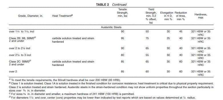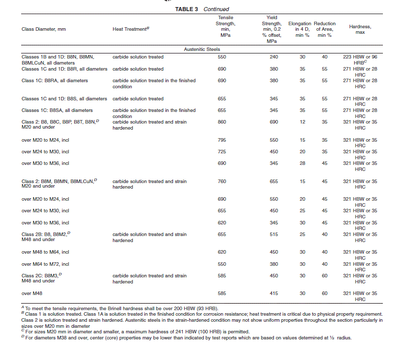 خواص مکانیکی پیچها بر اساس استاندارد ASTM A193 M